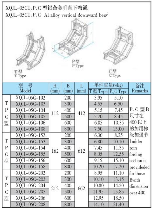 XQJL-05CT、P、C型鋁合金垂直下彎通橋架