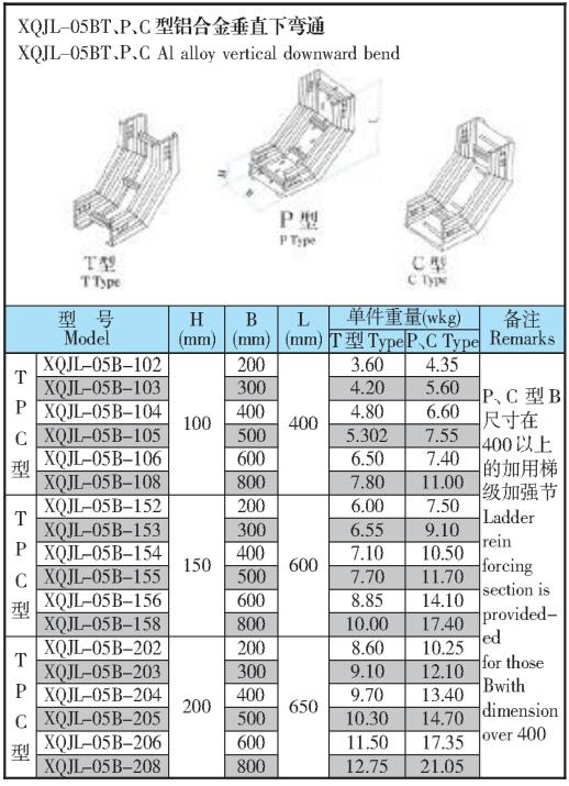 XQJL-05BT、P、C型鋁合金垂直下彎通橋架