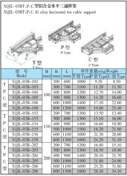 XQJL-03BT、P、C型鋁合金水平三通橋架